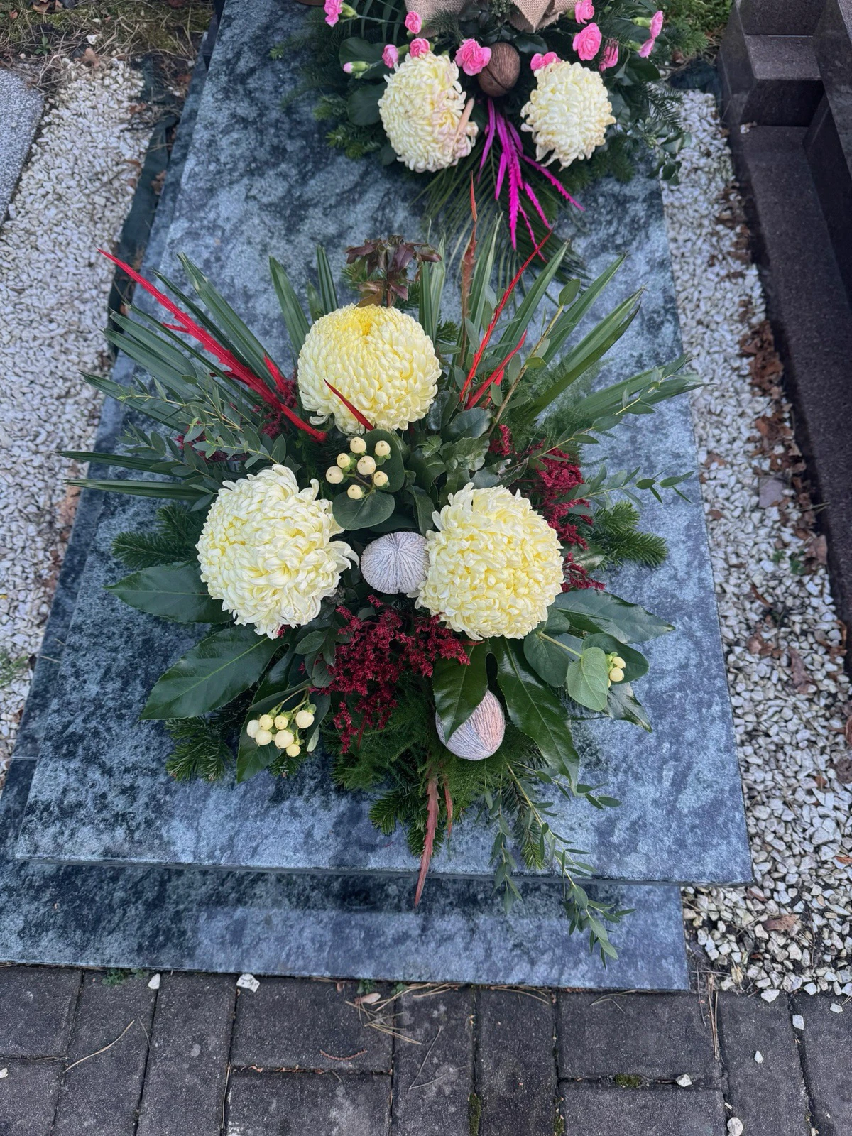 Zapraszamy do naszej galerii, która jest kwintesencją pracy i serca, jakie wkładamy w każdą kompozycję. Znajdziesz tu przekrój naszej szerokiej oferty - od zachwycających bukietów okolicznościowych, które uświetnią każde święto, po eleganckie i godne wieńce pogrzebowe oraz trwałe ozdoby nagrobne. Każde zdjęcie to dowód na to, że w Kwiaciarni Agata piękno spotyka się z najwyższą jakością i dbałością o detal. Zainspiruj się naszymi pracami i znajdź idealną kompozycję dla siebie lub swoich bliskich.